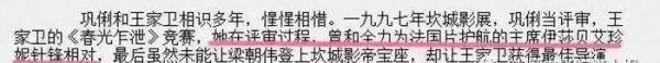 当时巩俐力挺王家卫的电影,并且希望梁朝伟能拿到本届的"影帝"宝座,但是身为评委会主席的阿佳妮则很不喜欢这部电影,两人为此在评审阶段争锋相对。后来据巩俐的翻译讲,最终巩俐虽然没能让梁朝伟登上坎城的影帝宝座,但还是让王家卫夺得了当年的最佳导演奖。在这里小妹儿不得不说一句,巩皇slay!