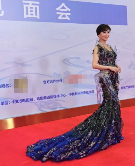赵雅芝身着的长裙裙摆足足快有2米长,但在红毯上的她如鱼得水,一点也不怯场。