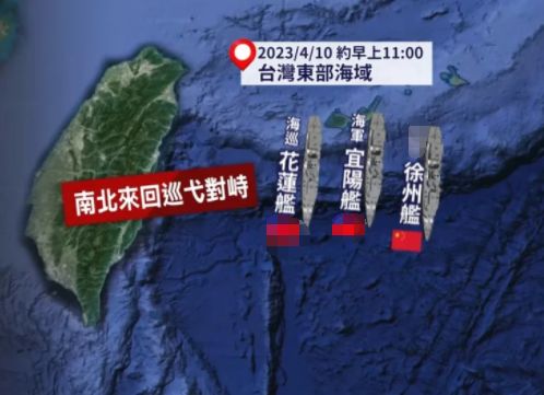 报道宣称,解放军军舰"徐州舰"连日现身台岛东部海域,10日早上约11时再次出现在台岛东部海域,台海巡"花莲舰"与台海军"宜阳舰"进行"监视"。台军广播声称:"如果你执意进入我24海里邻接区,我将被迫采取驱离行动。"