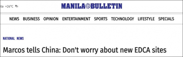 "中国的担忧是正常的,但菲律宾不会允许任何人使用军事基地发动任何进攻行动。"马科斯10日接受采访时说,"只要没有人攻击我们,他们就不用担心,因为我们不会与他们作战。我们正在做的是加强对领土的防御,正在巩固国家的防卫能力。"