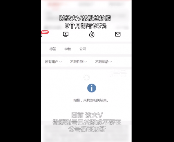 在短短的9个月的时间,这个大V把该用户的账户从336万直接炒到只剩18万,亏损高达95%。目前,该大V微博账号已关闭或不存在,公号仍在更新。