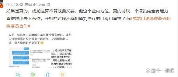 按照目前的情况来看,《龙马精神》估计要扑街了,即使成龙卖力出来宣传,依然也无济于事。当初成龙与刘浩存合作时,就应该知道她的口碑,至于为何没拒绝,估计是因为钱给的多。