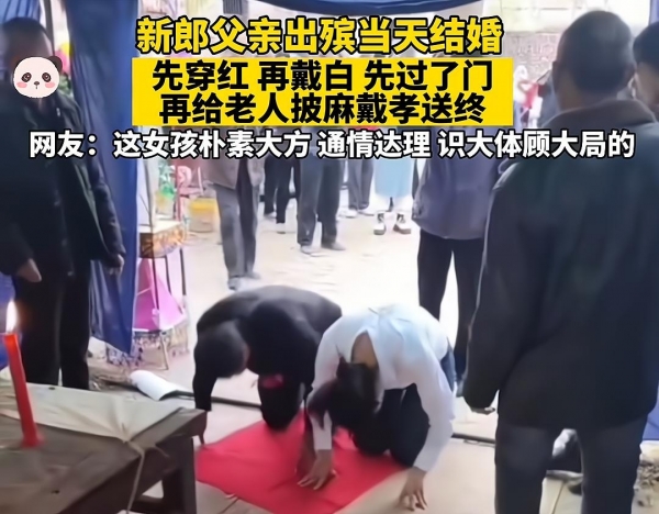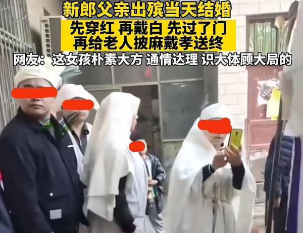 4月11日,河南某地一户人家,在同一天办了白事和红事,父亲出殡当天,儿子举行婚礼,新娘脱下喜服换上孝服,场面很是感人。