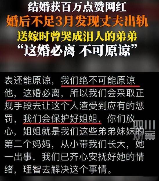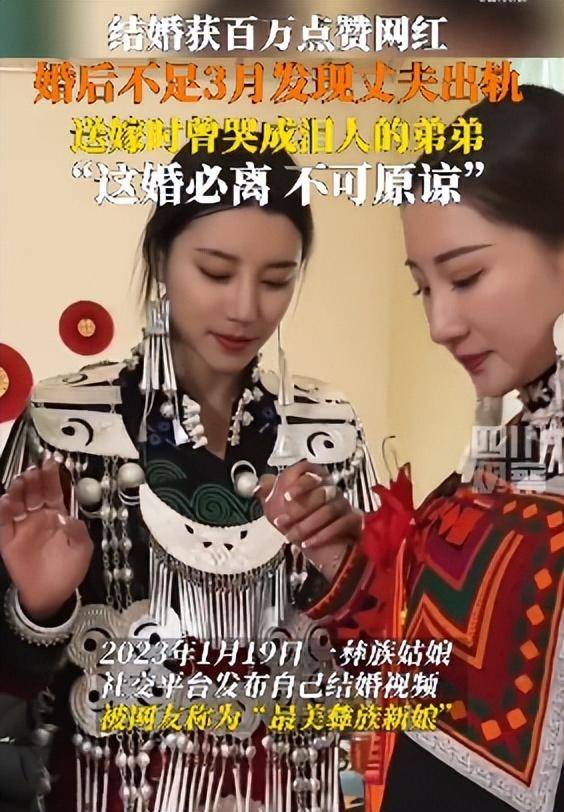 原标题:婚礼曾获百万点赞!婚后不足3月,"彝族最美新娘"称老公出轨有露骨聊天记录,弟弟回应:不是炒作必须离婚