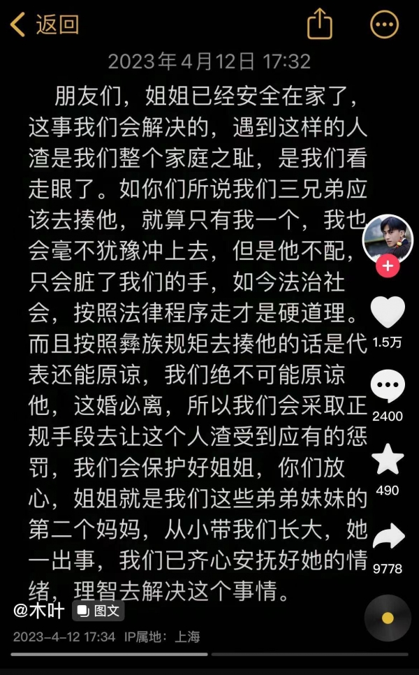 当事人弟弟发文回应