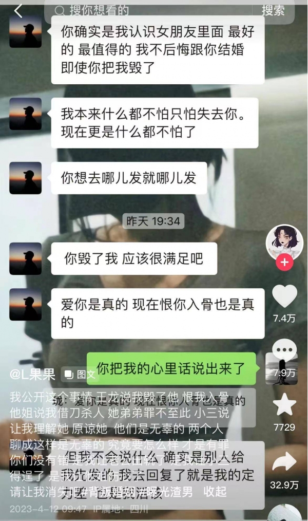 4月12日上午,官宣结婚不到3个月,果果晒出多张截图自曝老公婚内出轨。