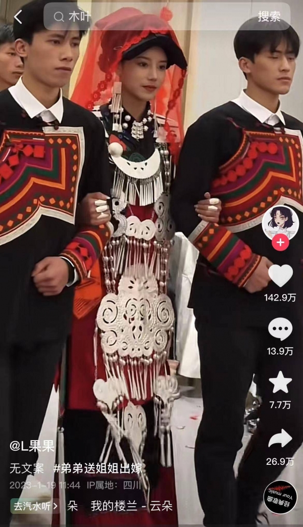据悉,2023年1月19日,彝族姑娘果果晒出结婚视频,婚礼充满民族特色。婚礼视频中,果果的颜值引发热议,被网友们夸赞为"彝族最美新娘"。