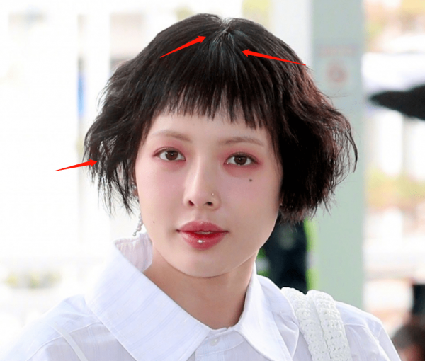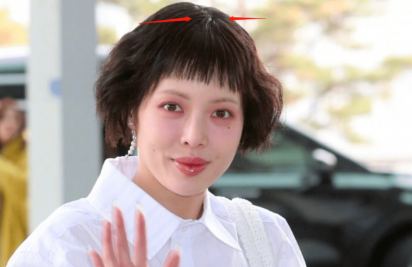 金泫雅把头发重新染黑,换了新鲜的眉上刘海齐耳短发造型,头发烫染得极为蓬松,这一发型显得她发量饱满,很有氛围感,但是从金泫雅的发缝处却可以清晰见到白发的痕迹,从发缝向周围延伸。