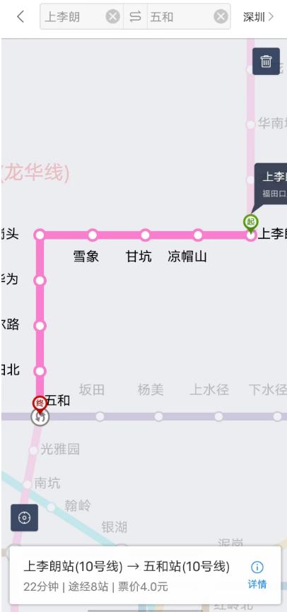 据该市民发布的截图显示,乘车路线为10号线的"上李朗--五和"。该乘车段途经8站,正常票价为4元。