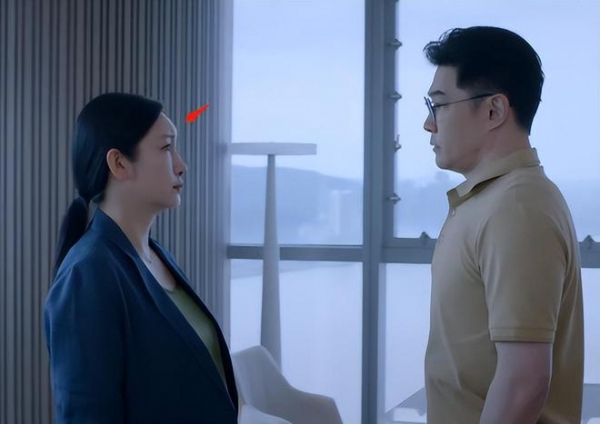即便不做表情,她的脸也很容易让人出戏,被观众吐槽最多的是她的额头鼓得像"寿星公"。