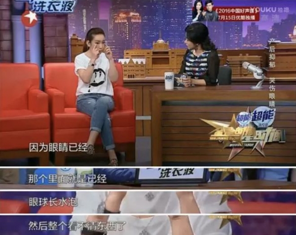 她本人也回应过,说是因为生完孩子之后,情绪非常不好,经常哭,导致眼睛长水泡看不清东西,医生说单眼皮压迫睫毛长成倒刺,在医生的建议下才割的双眼皮。