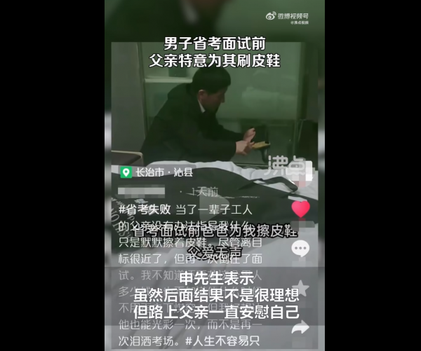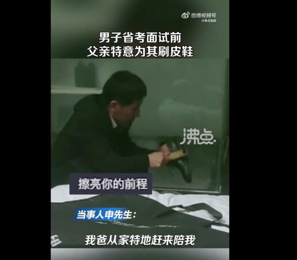 (原标题:儿子省考面试前父亲默默为其刷皮鞋)