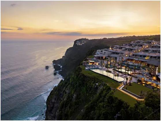酒店定在巴厘岛的乌鲁瓦图六善酒店。虽然在巴厘岛举办婚礼的名流很多,但这家开业与2019年的饭店此前并未进入大众视野。