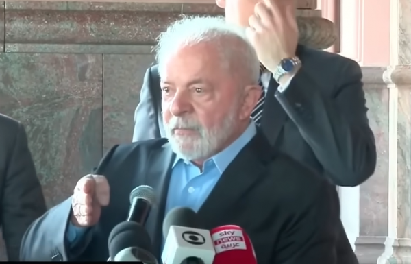 卢拉16日阿联酋记者会截图 图自"TV Brasil"