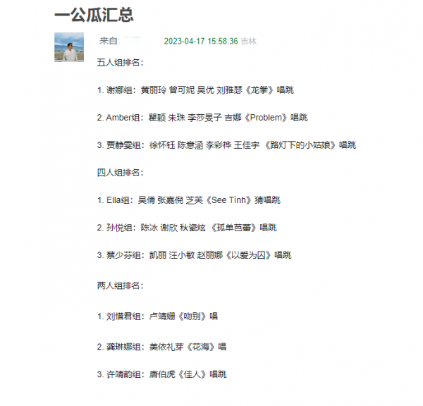 这次第四季第一轮公演,姐姐们被分成了九组,分成三个赛道PK,最终每个赛道第一名的组都可以全员晋级,后面的组应该会按照得票和人气榜进行排名淘汰。据小八了解的消息,第一轮公演可能会淘汰五位姐姐,如果还没播出,姐姐就被淘汰了,还是相当残忍的。