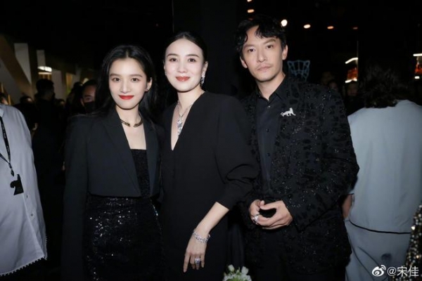 同样42岁的宋佳出席另一场珠宝活动,黑色深V连衣裙,高贵优雅,散发成熟女性韵味。