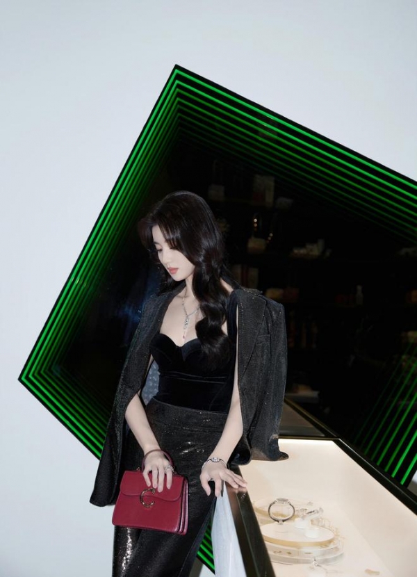 王楚然身着黑色贝壳抹胸,展示傲人身材,性感撩人,明艳大气,透着高级美。