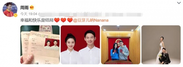 4月20日,乒乓球运动员周雨官宣结婚的喜讯,前段时间风波不断的体坛终于迎来了好消息,不少网友都纷纷留言表示祝福。