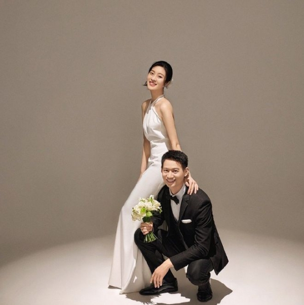 不得不说,周雨的眼光真的非常好,老婆孙妮娜的颜值完全不输女明星,肤白貌美、身材纤细,结婚照上的两人看起来也是相当般配。