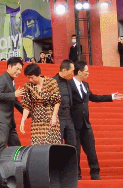 这里重点夸一下张颂文,从出场开始就一直照顾关锦鹏,导演走红毯楼梯的时候行动有些不便,张颂文就一直扶着关锦鹏导演的胳膊。后续发现不对也立刻上前去扶,看现场返图几乎是架着关锦鹏导演了,而这也相当于几乎放弃了自己在红毯上的高光,这波举动很有格局。
