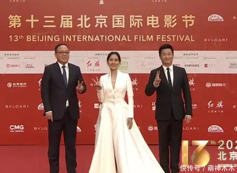 而《流浪地球》剧组三人可以说是礼貌谦让的典范了,从最开始就在互相礼让。等到合影环节,王智先是提着大裙子绕了一下,紧接着吴京则邀请王智站到C位,看下来就是非常融洽和谐。