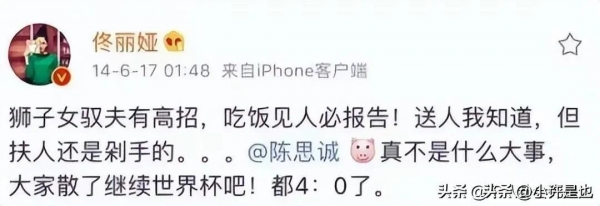 还有在他俩刚结婚那会儿,有记者采访佟丽娅说如果对方出轨的话会怎么处理,她只说"我只能好好表现自己",最后还补充说只要对方能回家就好,言语之中就透着满满的卑微感