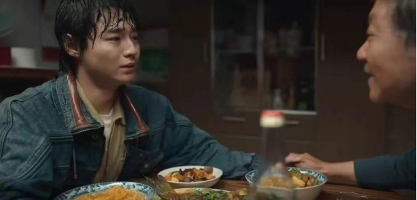 而更令观众瞬间觉得脊背发凉的一个场景,是范伟饰演的王响,在家里和儿子王阳吃饭的画面。