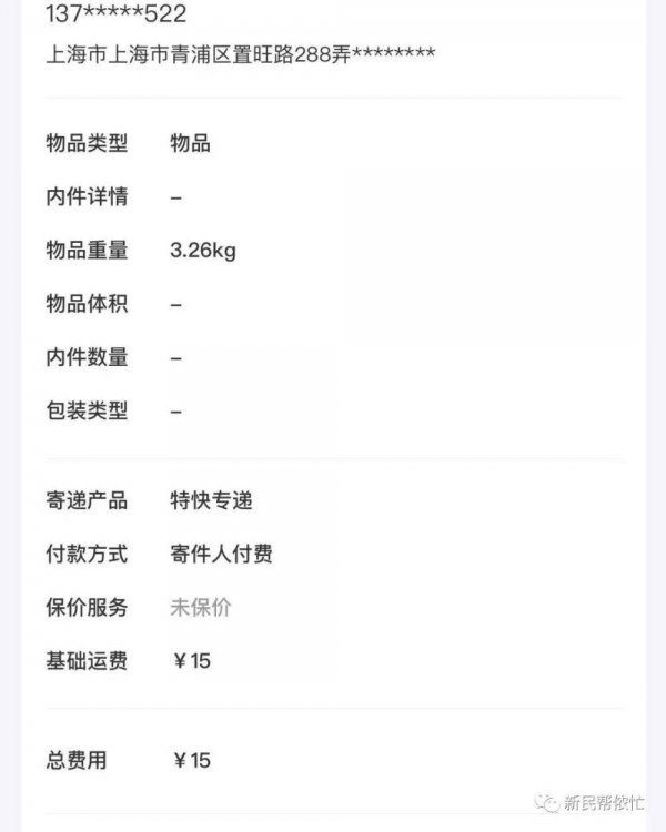 薛先生表示,收到金球后,他于2022年12月9日叫了EMS上门取货,寄给上海市青浦区的朋友。当天下午,揽投员上门取货,将物品打包后取走,包裹显示重量为3.26kg,运费15元,未保价。如此昂贵的物品为何没有选择保价,对此薛先生解释,主要是出于对EMS的信任。