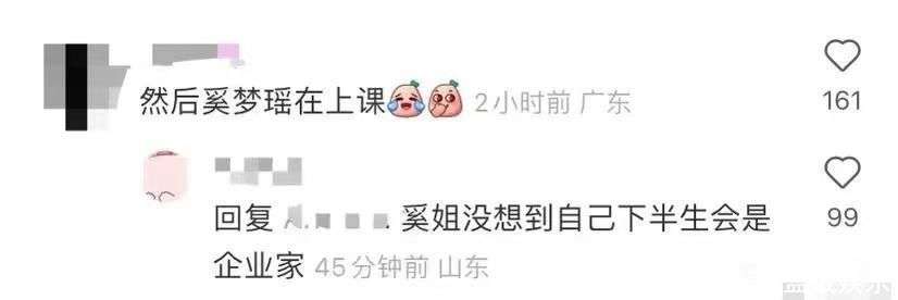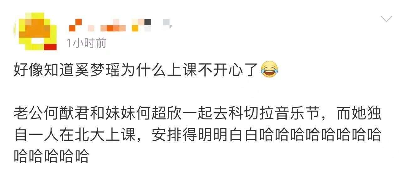 因此,如今何猷君开心玩耍的照片曝光后,不少网友还调侃道,"好像知道奚梦瑶为什么上课不开心了""奚姐没想到自己下半生会是企业家"。