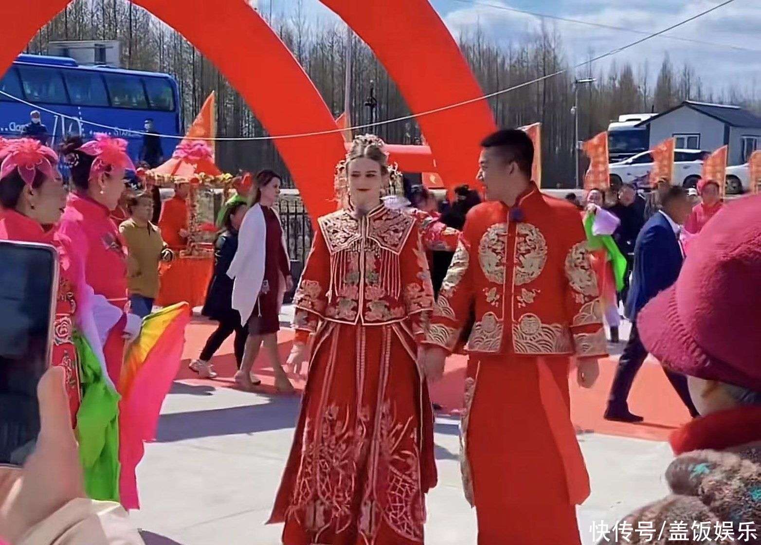 据悉,这场婚礼的主角是一位东北小伙和俄罗斯姑娘,二人相恋十年,终于携手走入了幸福的殿堂。