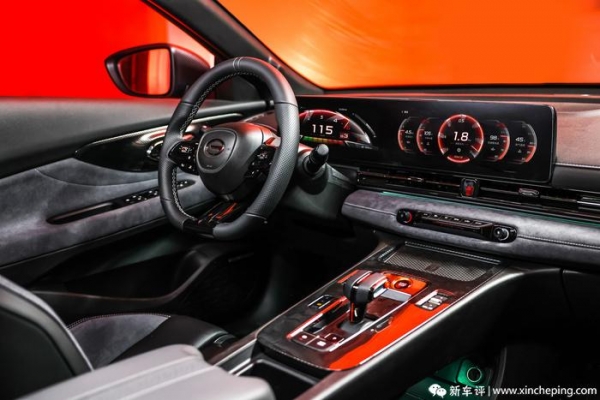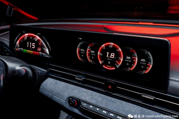 内饰设计与普通版车型几乎一致,但为了加强运动氛围的营造,影豹R新增了红色UI主题,仪表除了显示常规信息之外,现在还能显示涡轮压力、机油温度、机油压力以及水温等参数,更符合性能车的身份。内饰使用上运动车经典的黑色配色,车内大量铺陈超纤麂皮材质和精致的缝线,前排座椅也换装了包裹感更好的一体式桶椅,座椅的头枕上印有"R"徽标,该座椅将配备肩部支撑、腰部支撑、大腿支撑。