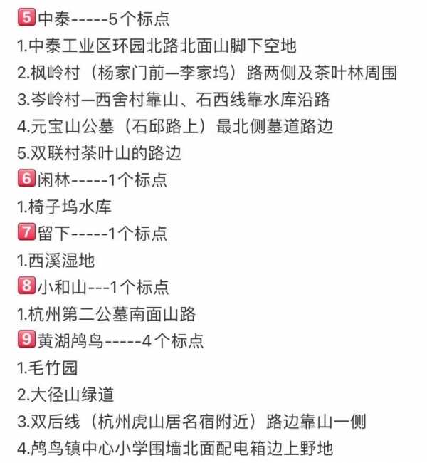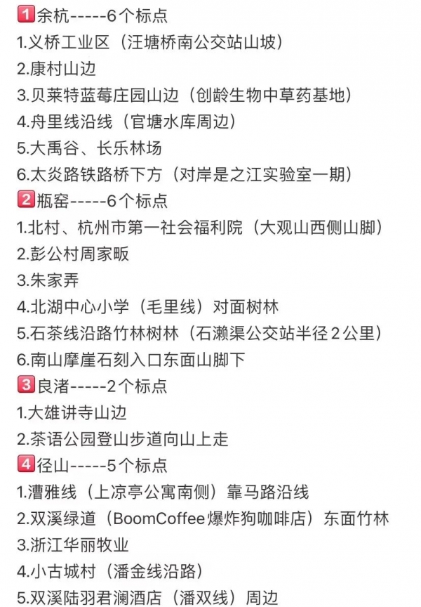 最近,还有网友在社交平台上,晒出自己整理好的余杭附近覆盆子的分布地图。小编一看不禁感叹:"嚯,可真齐全!这一看就是野草莓十级爱好者了"