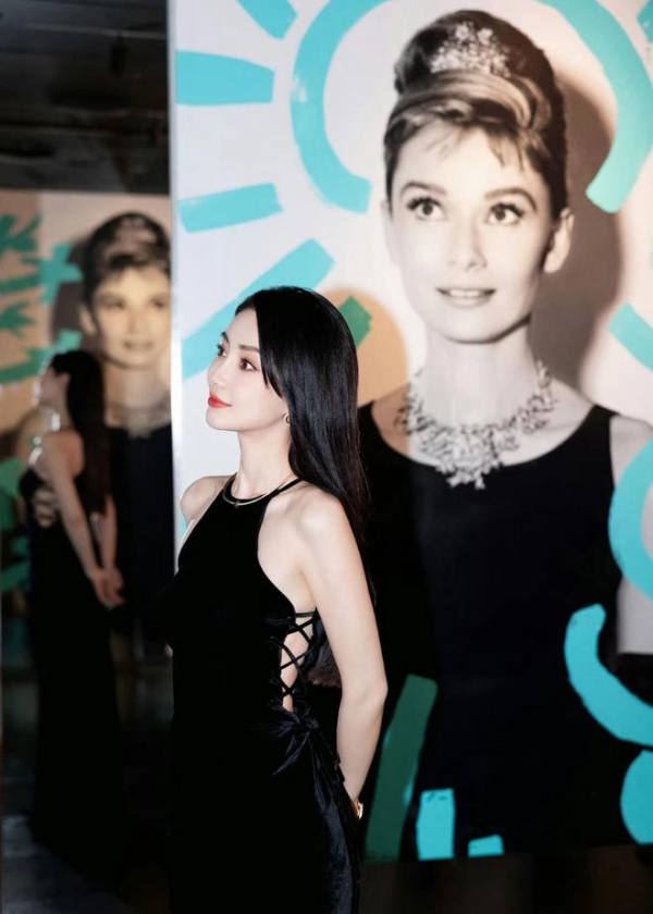曝光的画面中,杨颖穿着黑色露腰长裙,搭配柔顺的黑色长发,整个人看起来优雅又性感,美出新高度。