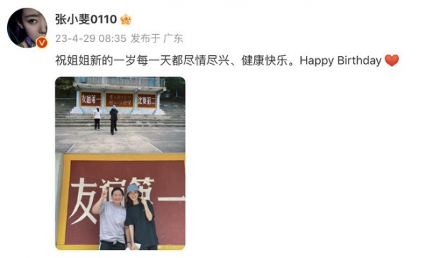 4月29日是贾玲的41岁生日,好闺蜜张小斐在社交平台上分享了两人的合照为其庆生,并祝福道:祝姐姐新的一岁每一天都尽情尽兴、健康快乐。Happy Birthday。