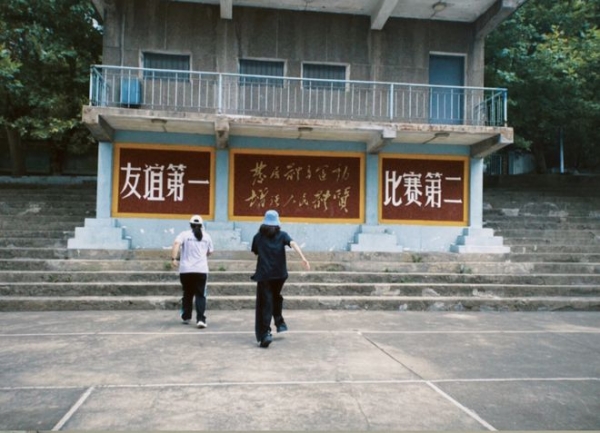 两人一起往前跑,颇有一种小姐妹之间你追我赶、嬉笑追逐打闹的画面感,十分温馨。