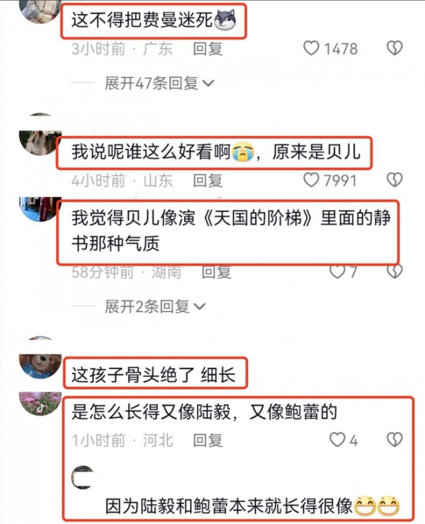网友大赞贝儿骨相很绝,有《天国的阶梯》里的静书的气质,长得既像鲍蕾又像陆毅。