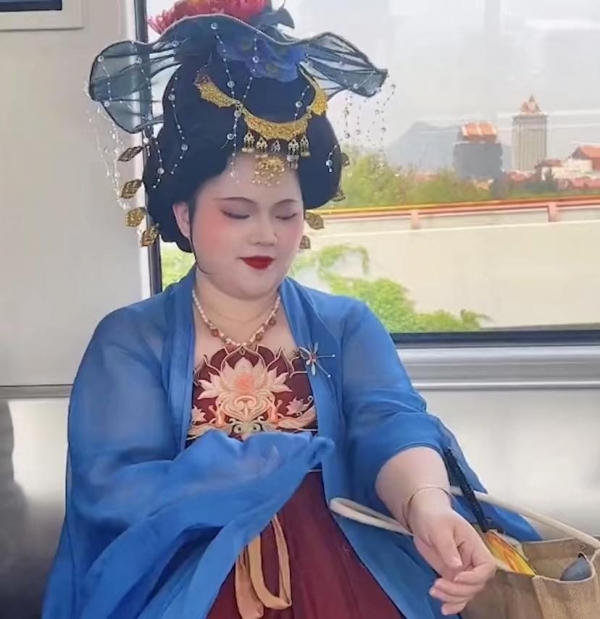 近日有网友分享了一段视频,在地铁上,偶遇了一位身材丰满的女生,打扮成古代美女的样子,她盘着高高的发髻,化着精致的妆容,穿着华丽的唐装,虽然人看起来比较胖,但是,这身打扮和她的身材相比起来,非常完美,让网友们忍不住惊叹:终于明白唐朝的美了!