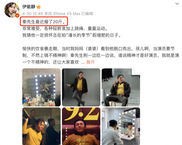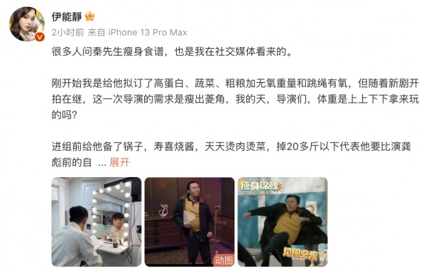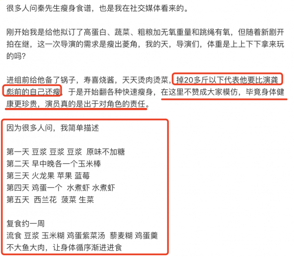 秦昊为新剧增肥又暴瘦20斤,伊能静晒减肥食谱,爆料秦昊一度腿软