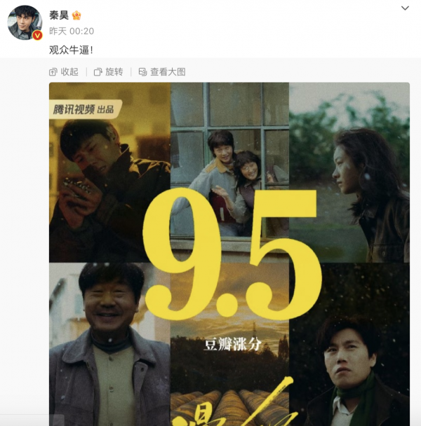 秦昊娶了伊能静之后,名气上升,精湛的演技也被越来越多观众看到,好剧本接踵而至。今年他参演的《漫长的季节》播出,从最初的9分上涨到了9.2分,收官之际又涨到了9.5分,很难被超越。