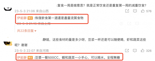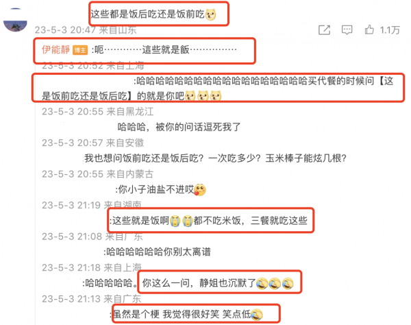 有网友问"这些都是饭后吃还是饭前吃",伊能静一时语塞,不过她还是回一个了:呃……这些就是饭……