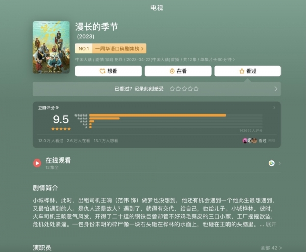 《漫长的季节》后劲太大,涨到9.5分成近5年第一,这些演员功不可没!