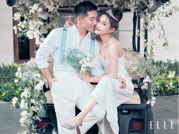 原来超莲邀请了香港版《ELLE》的记者编辑参加婚礼,在巴厘岛拍摄婚纱照的同时,顺便拍了杂志封面。