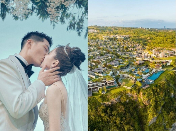 "在筹备婚礼期间,我们跟巴厘岛的本土设计师以及很多工作单位都会商量,经常有很多新的意念碰撞出来。我们增加了很多新元素,包括风水上的讲究和寓意,例如在悬崖呈现山盟海誓的感觉,又搭建了时空隧道、魔法森林和情人桥。"