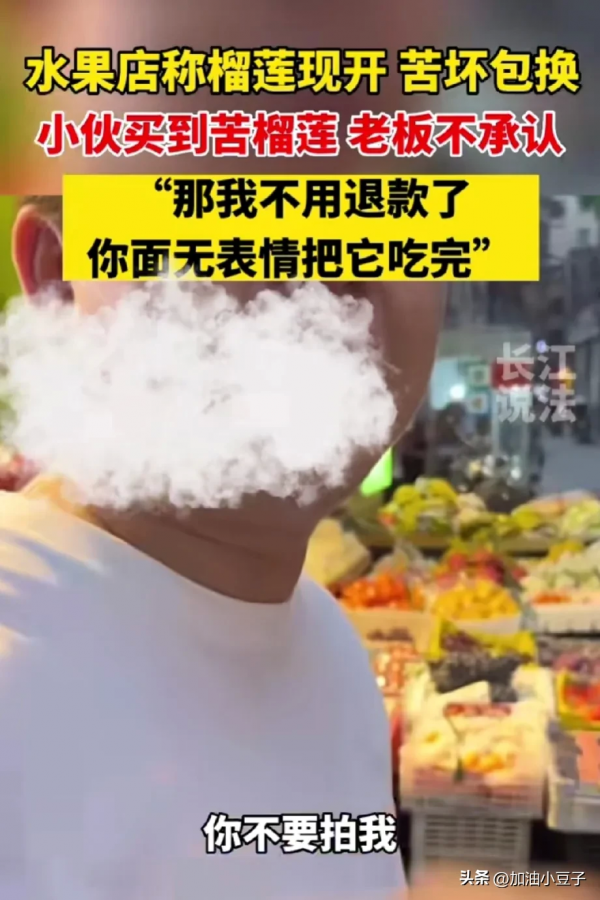 为了不赔这236块钱,老板也是豁出去了,皱着眉头将榴莲给全部吃完了,最后男子也没能重新换一个榴莲,更没有退到款。最后男子将此事发布到了网上,不过给老板遮住了脸,只是提醒一下大家。