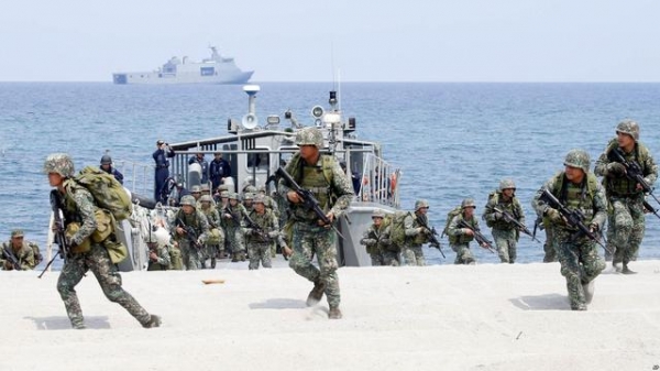 3月和4月,菲律宾和美国分别举行了为期10天和为期18天的联合军演。美军更是趁着两次联合军演之际,将"尼米兹号"核动力航母打击编队开进南海,耀武扬威。