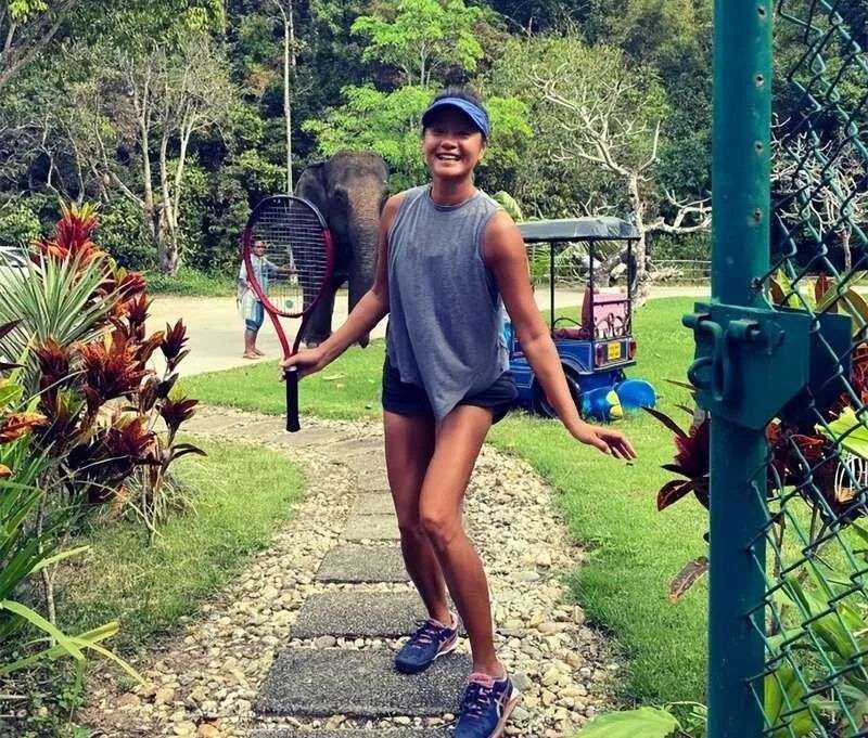 泰国紫外线强,她又热爱运动,皮肤晒得黝黑,却活力依旧。