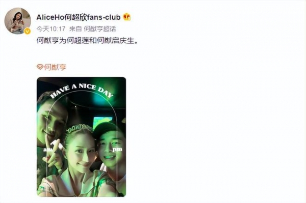 何超欣也在微博发文称何猷亨为何超莲何猷启庆生,并晒出了三人合照。照片中,何超莲何猷启抿嘴笑,何猷亨露牙笑,看得出来姐妹兄弟之间的关系非常融洽,并不像网传的那样。