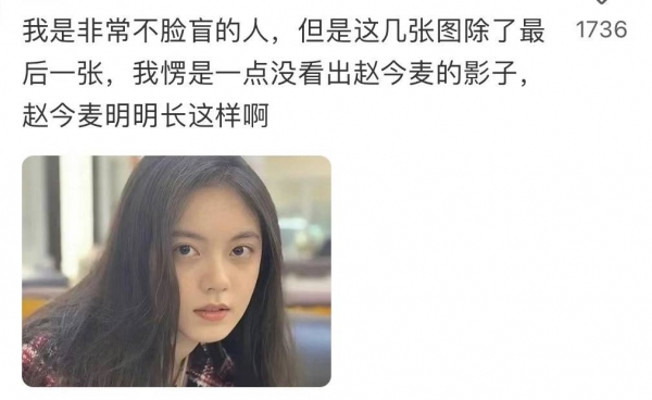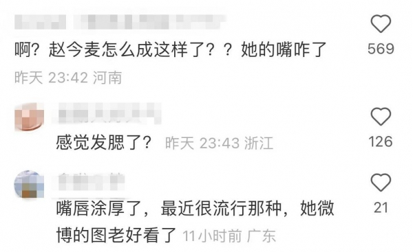 网友仔细观察赵今麦的照片,大部分人觉得她只是因为浓妆导致模样变化大,也有少数人提出:今麦妹妹是不是整容了?