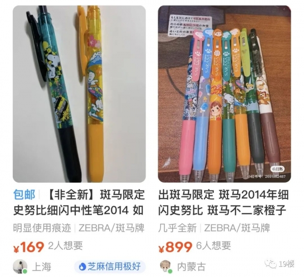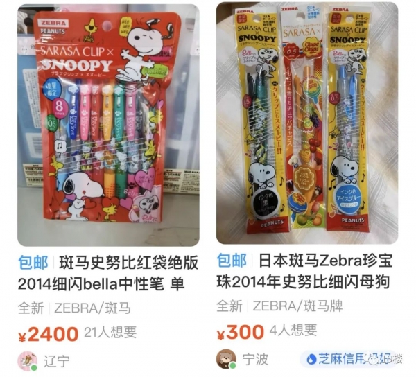然而在二手平台搜索可以发现,这样一支印有卡通图案的水笔,单支要价基本都在150元之上,整套更是要上千元。