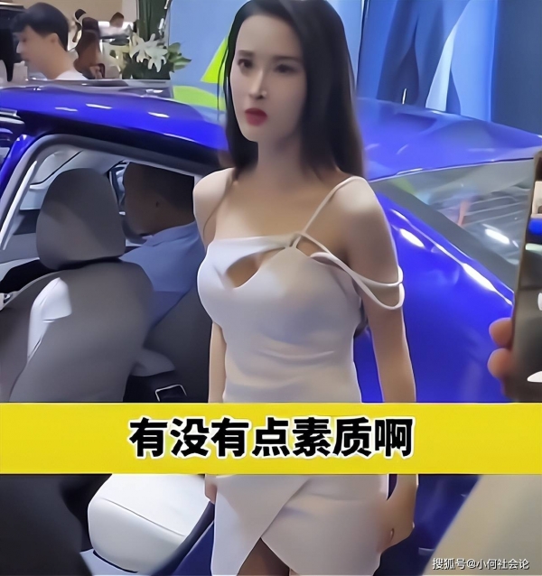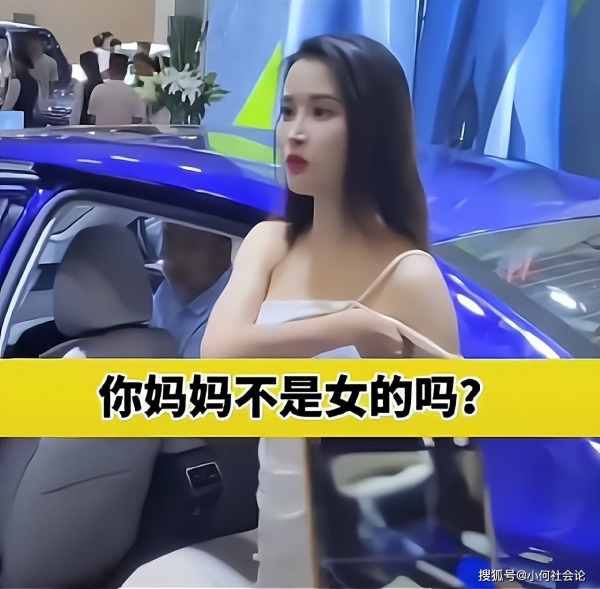 看到男子如此过分,女车模立马止住笑脸白眼指责对方:"不要蹲下来拍好不好,有没有点素质啊,你妈不是女的吗?"